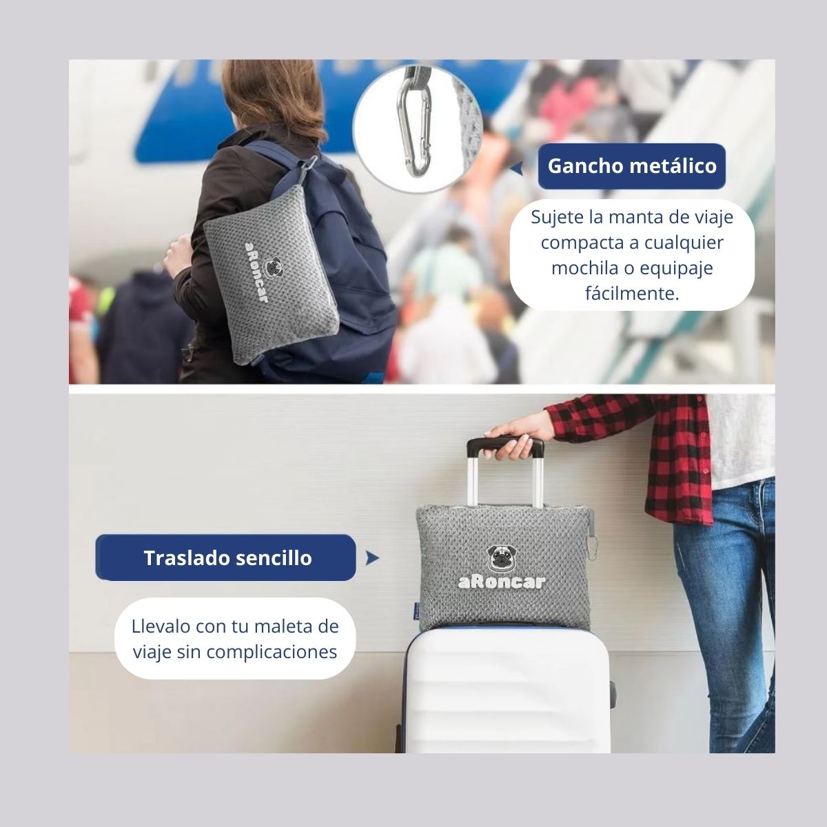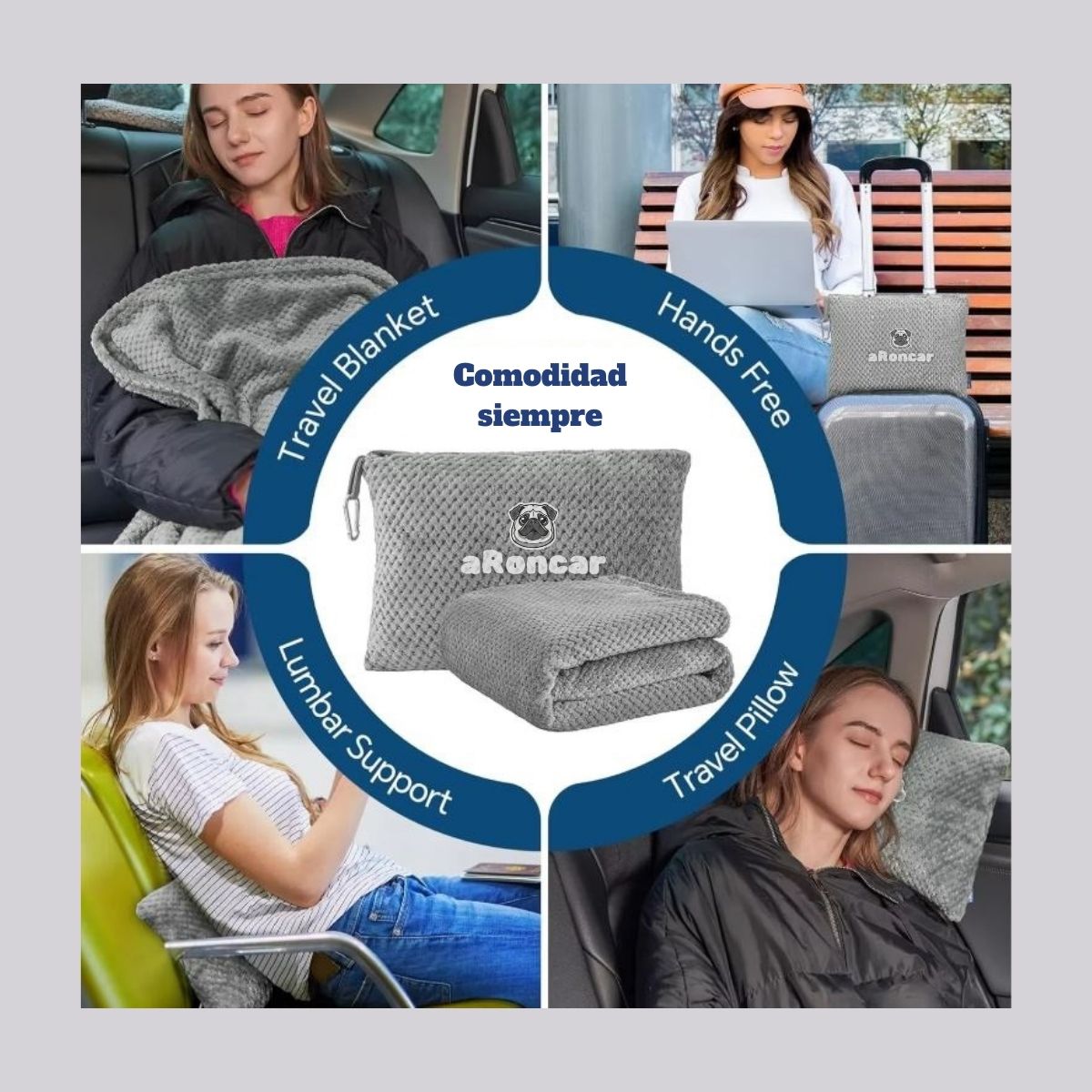 La Manta viajera aRoncar es tu compañera perfecta para cualquier aventura, ¡y también para esos momentos de descanso inesperados! Esta manta portátil se convierte en un cojín cómodo y divertido, ofreciéndote dos funciones en un solo accesorio.